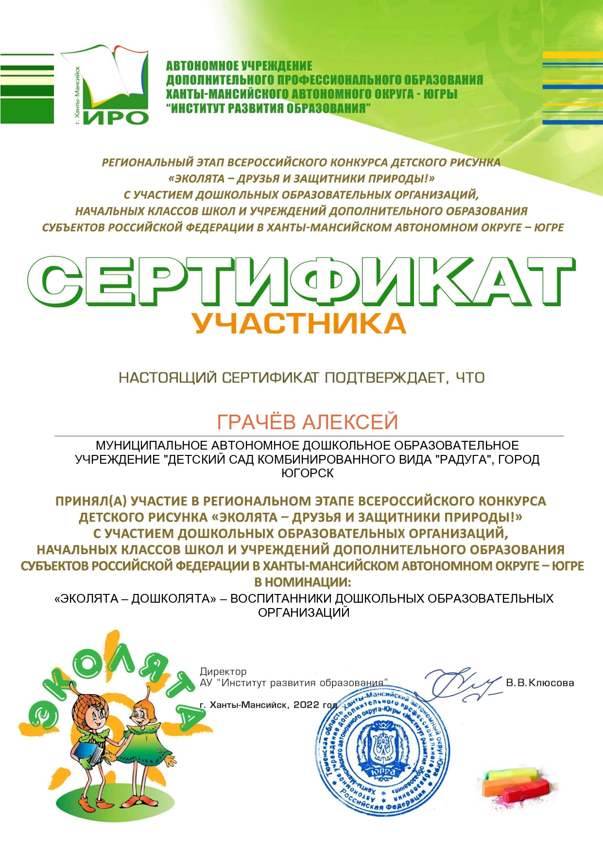 Региональный этап Всероссийского конкурса детского рисунка «Эколята-друзья и защитники природы!»