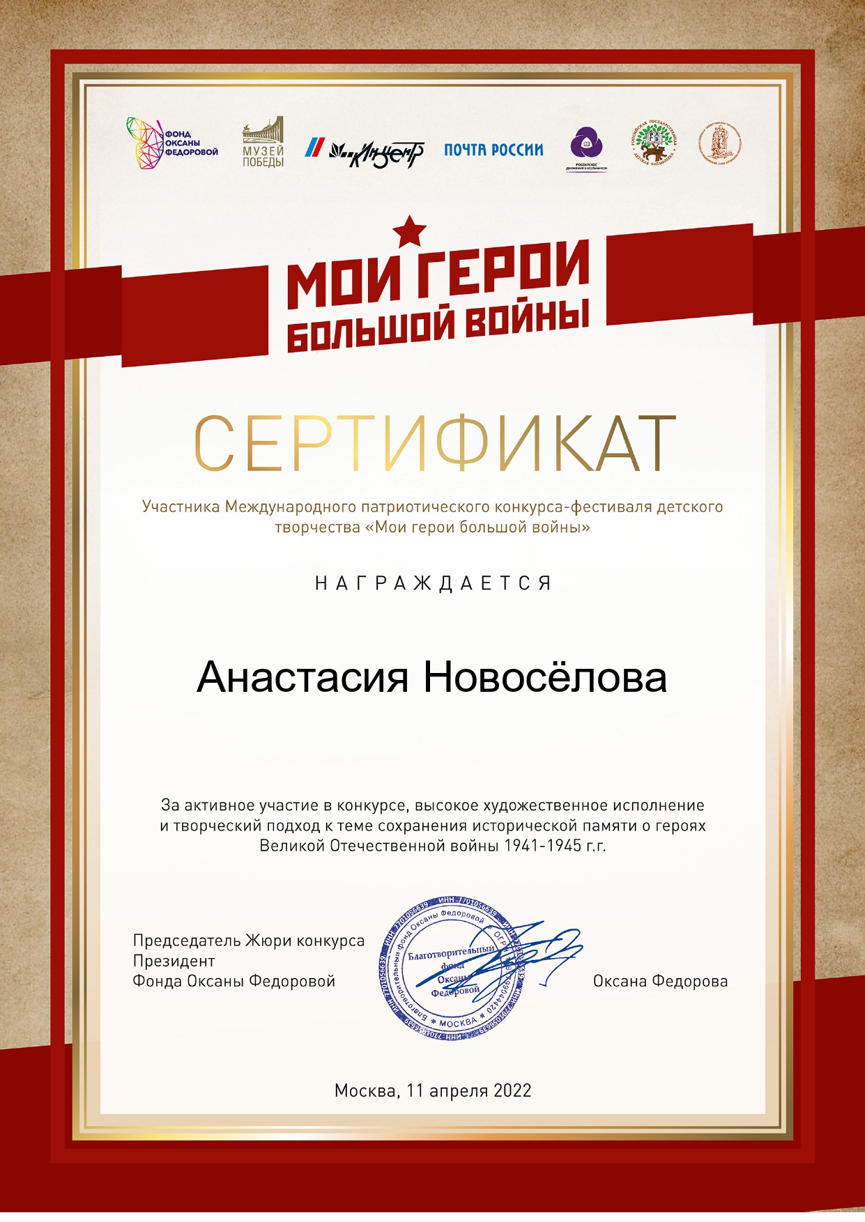 Международный патриотический конкурс-фестиваль детского творчества «Мои герои большой войны»