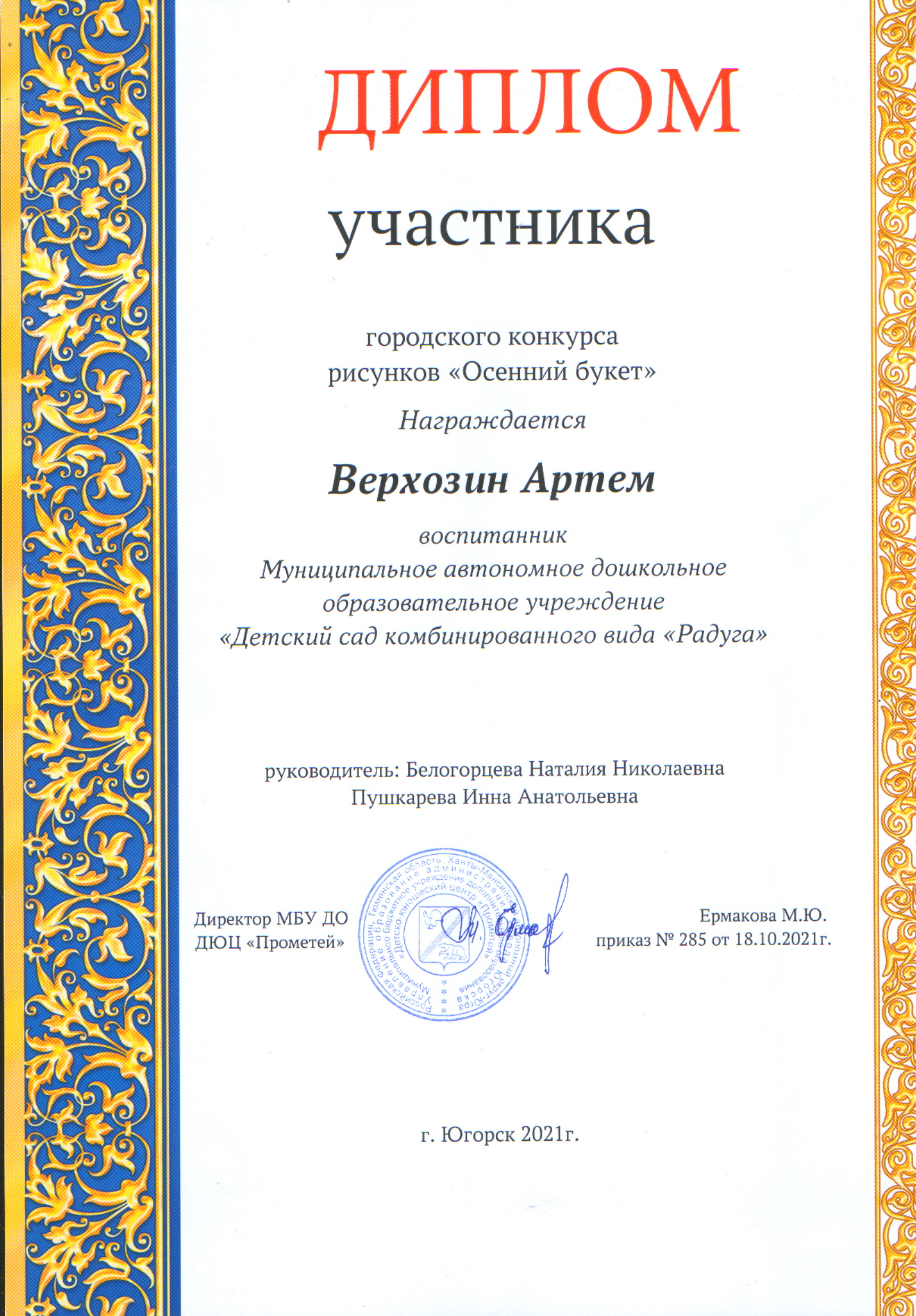 Воспитатель муниципального автономного дошкольного образовательного учреждения "Детский сад комбинированного вида "Радуга"
