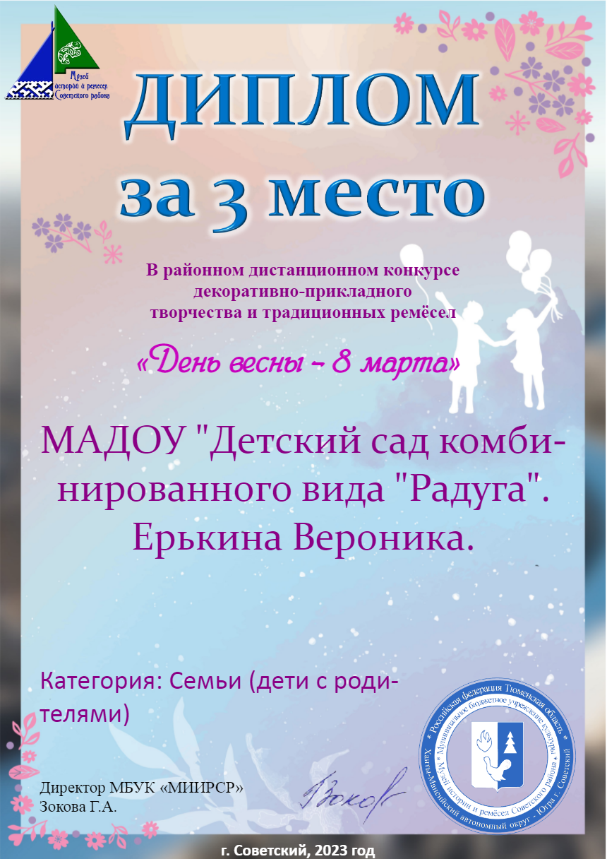 Воспитатель муниципального автономного дошкольного образовательного учреждения "Детский сад комбинированного вида "Радуга"